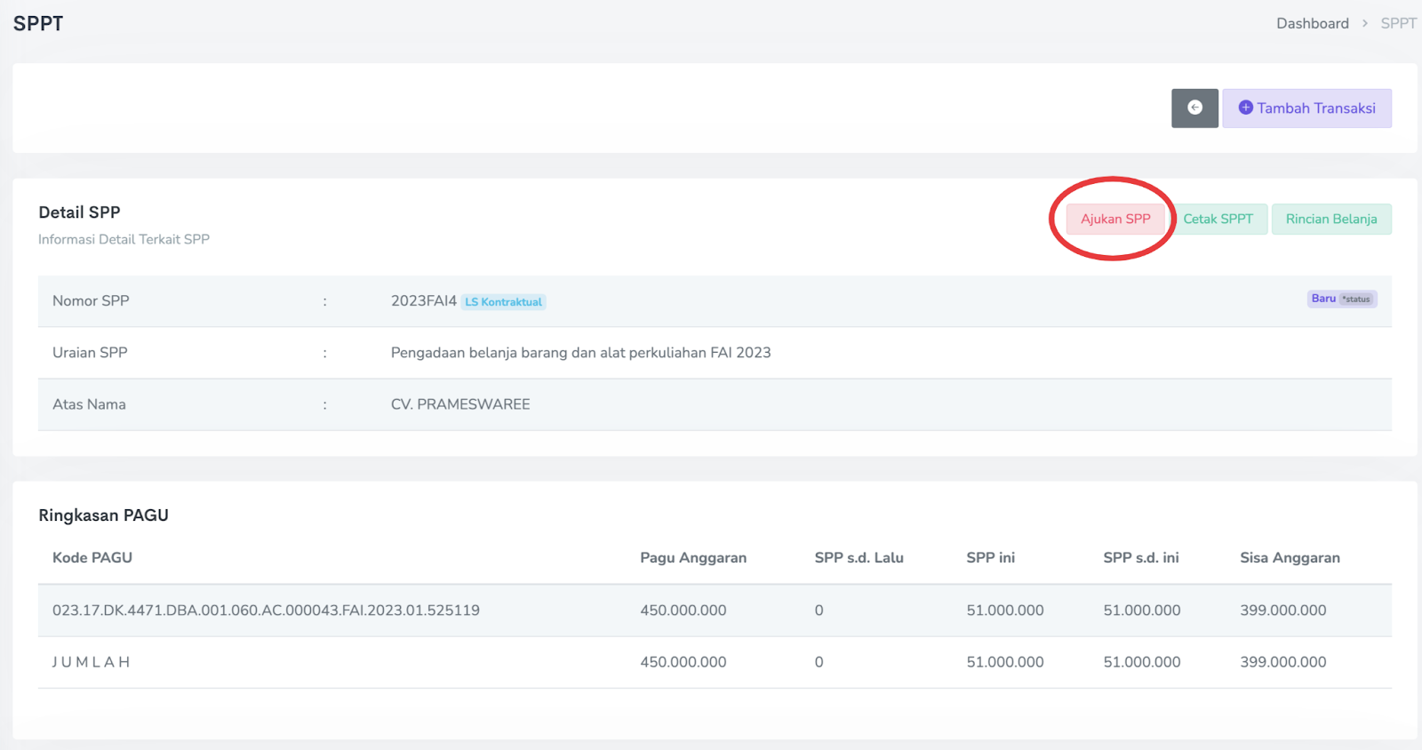 Kemudian klik Ajukan SPP